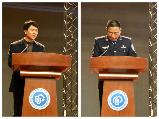 项延训在致辞中对高校派出所对机动学院学生安全工作的大力支持表示感谢。他指出,安全工作是高校一切工作的基础和保障,他希望学院广大师生能深刻领会“警院共建”工作的意义、以共建合作为契机精心组织各项活动,努力为维护校园安全稳定做出应有的贡献。