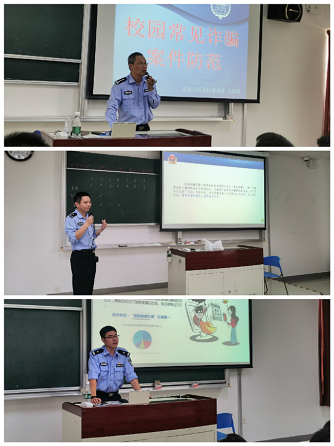 为加强学生安全意识,落实学院安全稳定工作,有效防范各类安全事件的发生,10月11日下午,77779193永利官网邀请上海市公安局奉贤分局高校派出所警官吴振霄、王淑敏、张志荣来到奉贤校区,为2019级全体新生进行防诈骗安全教育讲座。本次讲座以小班化的形式开展,共计开设6场,由辅导员王玉琳、王秋辰主持。