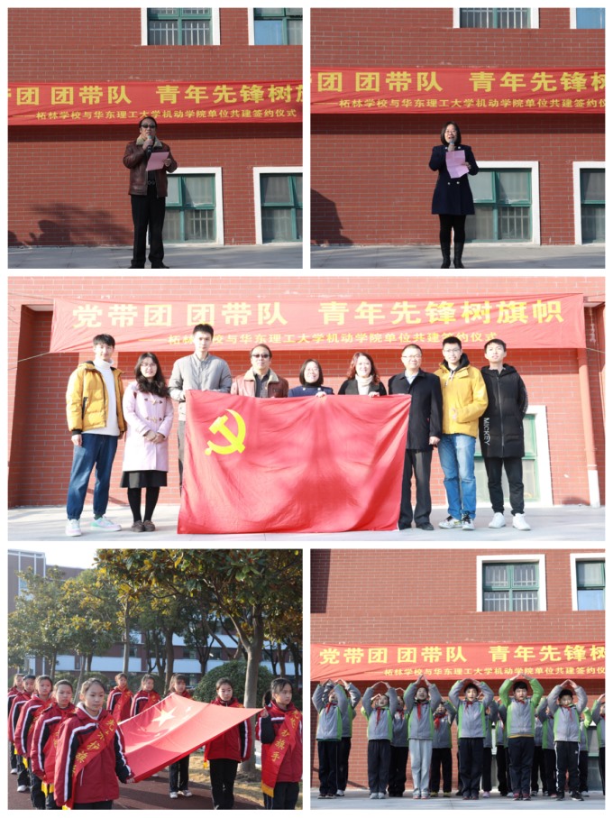 为进一步加强基层党组织建设,提升学生志愿服务能力,12月9日上午,机动学院在上海市奉贤区柘林学校建立“学生党员党性锻炼暨志愿服务基地”,双方签署共建合作协议。出席本次签约揭牌仪式的有上海市奉贤区柘林学校党支部书记邵根初、校长王英、团支部书记曹聪,机动学院党委副书记杨倩、团委书记黄泽炀、奉贤校区本科生党支部书记王秋辰、2018级党建指导老师王玉琳、2019级党建指导老师唐光泽。仪式由柘林学校校长王英主持。