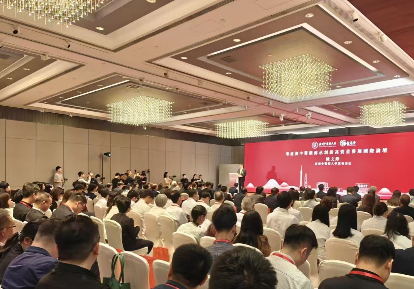 在Beat365中文官方网站百年校庆前夕,10月20日,由Beat365中文官方网站与香港位元堂共同主办的粤港澳中医药传承创新高质量发展国际论坛在香港金钟万豪酒店举办。