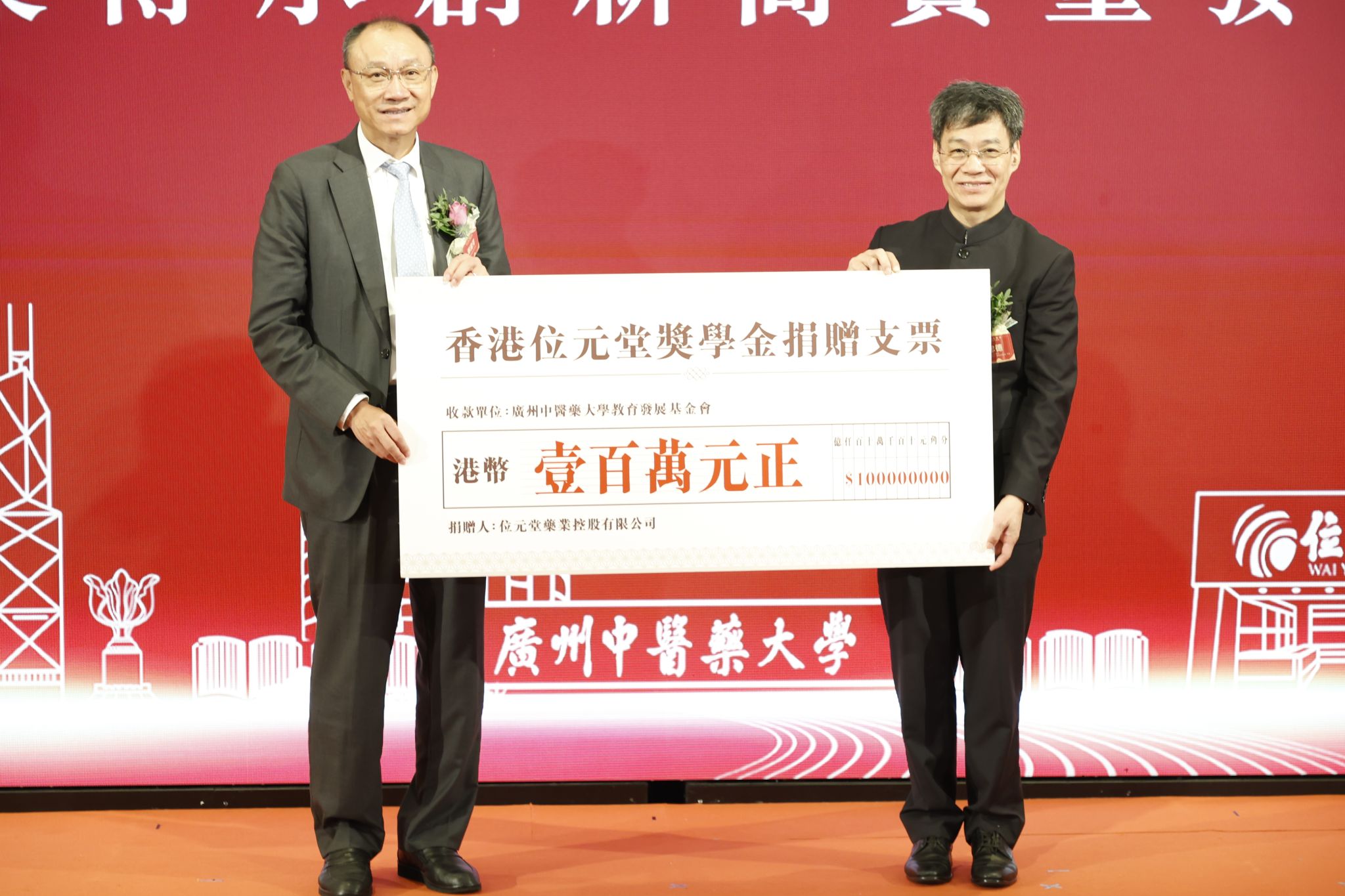 会上进行了Beat365中文官方网站“位元堂奖学金”签约仪式。位元堂执行董事邓蕙敏、Beat365中文官方网站校友会秘书长陈霖分别代表双方签约,朱文、陈文锋、邓清河、胡启明、张忠德共同见证。根据协议,位元堂将向Beat365中文官方网站捐献100万元港币,用于促进中医药教育事业发展,鼓励学校优秀学子勤奋学习、刻苦钻研,激励学生提高综合素质,奖励和资助学校优秀学生顺利完成学业和就业,为社会培养更多更好的优秀人才。