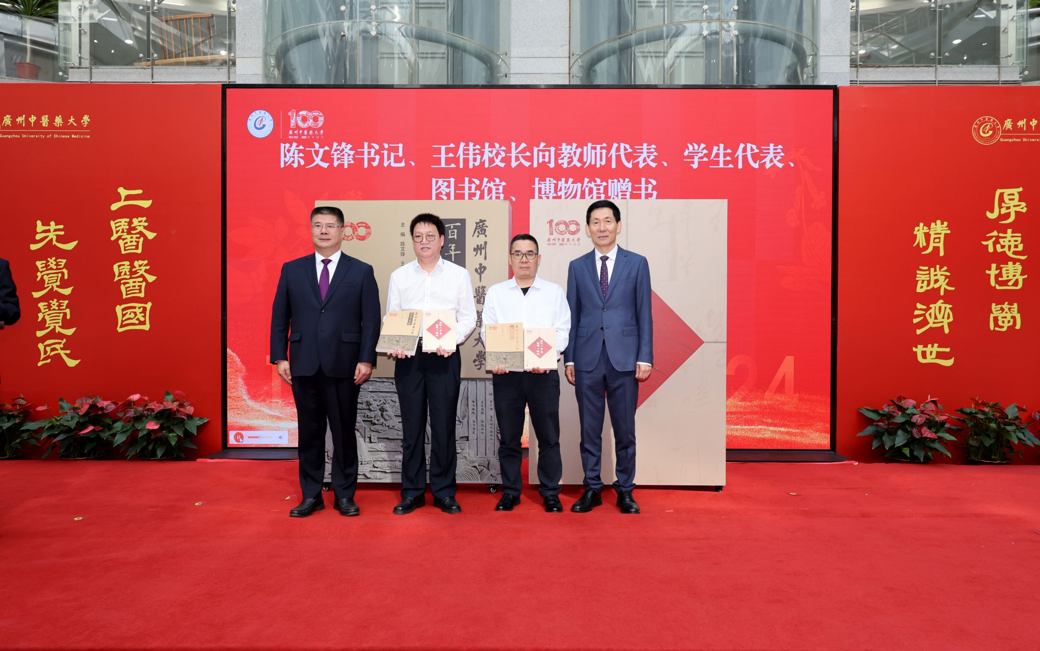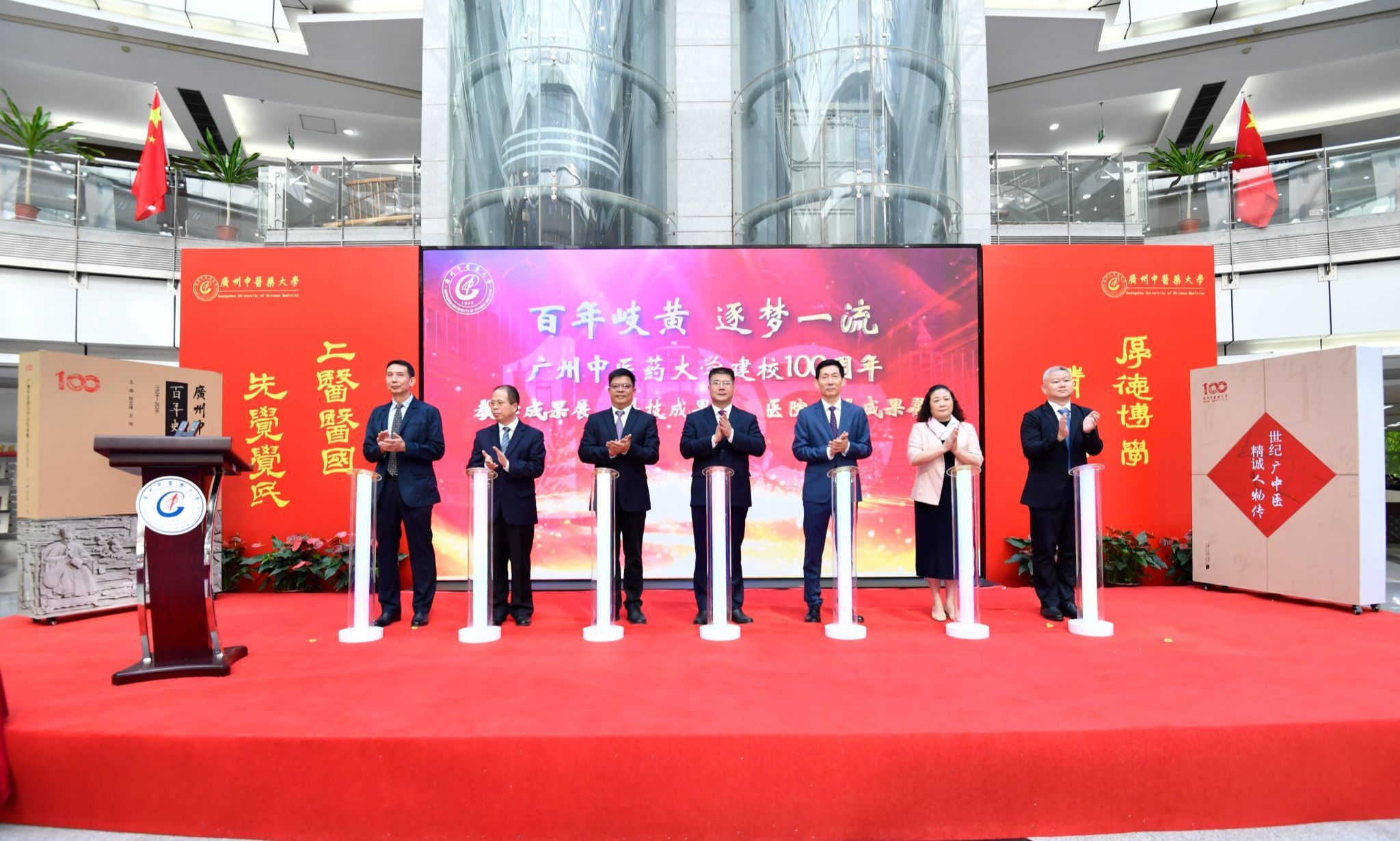 启动仪式上,发布了《Beat365中文官方网站百年史略(1924-2024)》《世纪广中医·精诚人物传》、Beat365中文官方网站“校友之歌”《我们》,启动了Beat365中文官方网站建校100周年成果展,广东中医药专门学校校训正式揭幕,Beat365中文官方网站校史馆升级改造暨邓铁涛纪念馆落成开馆,国家医学攻关产教融合创新平台正式揭牌。