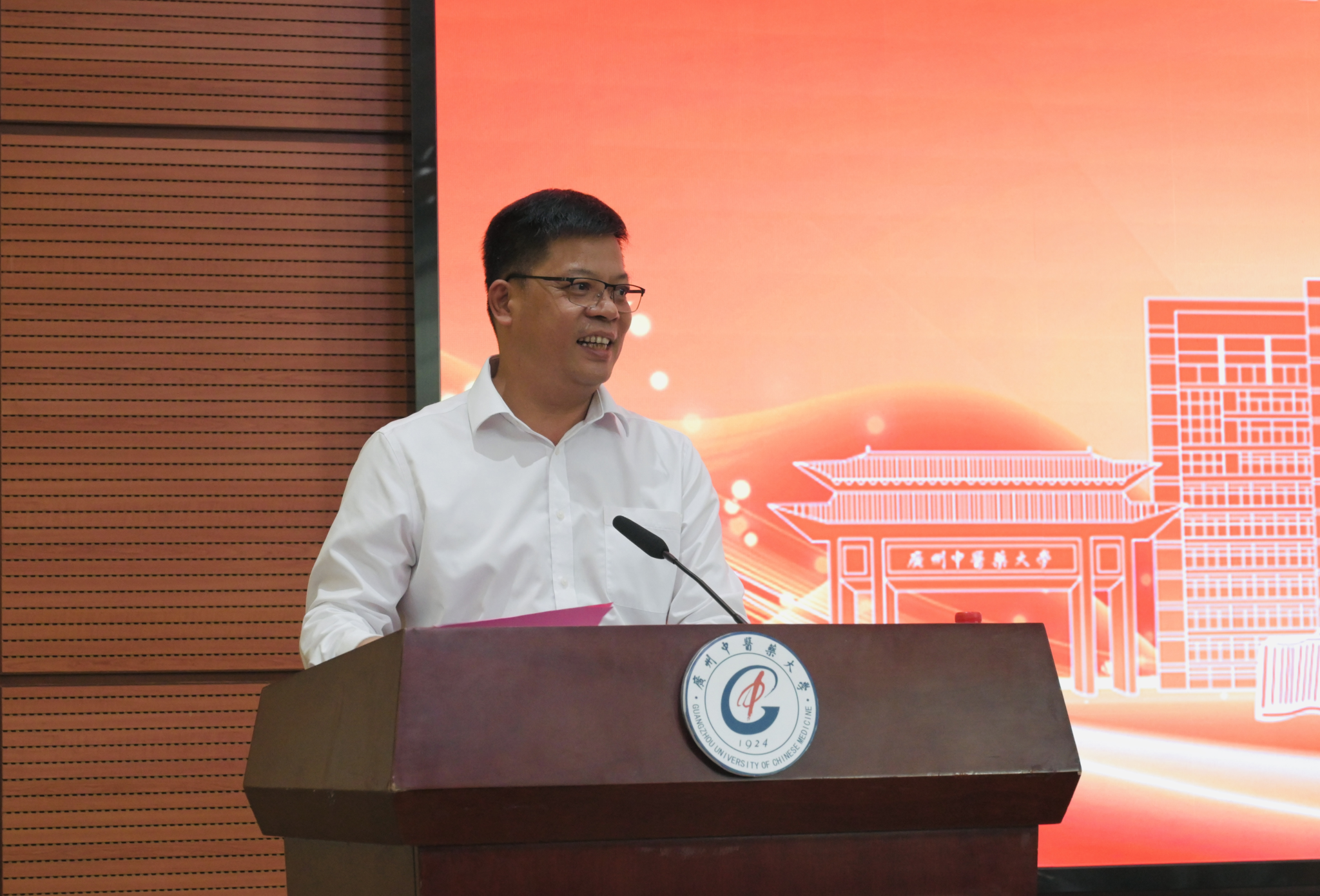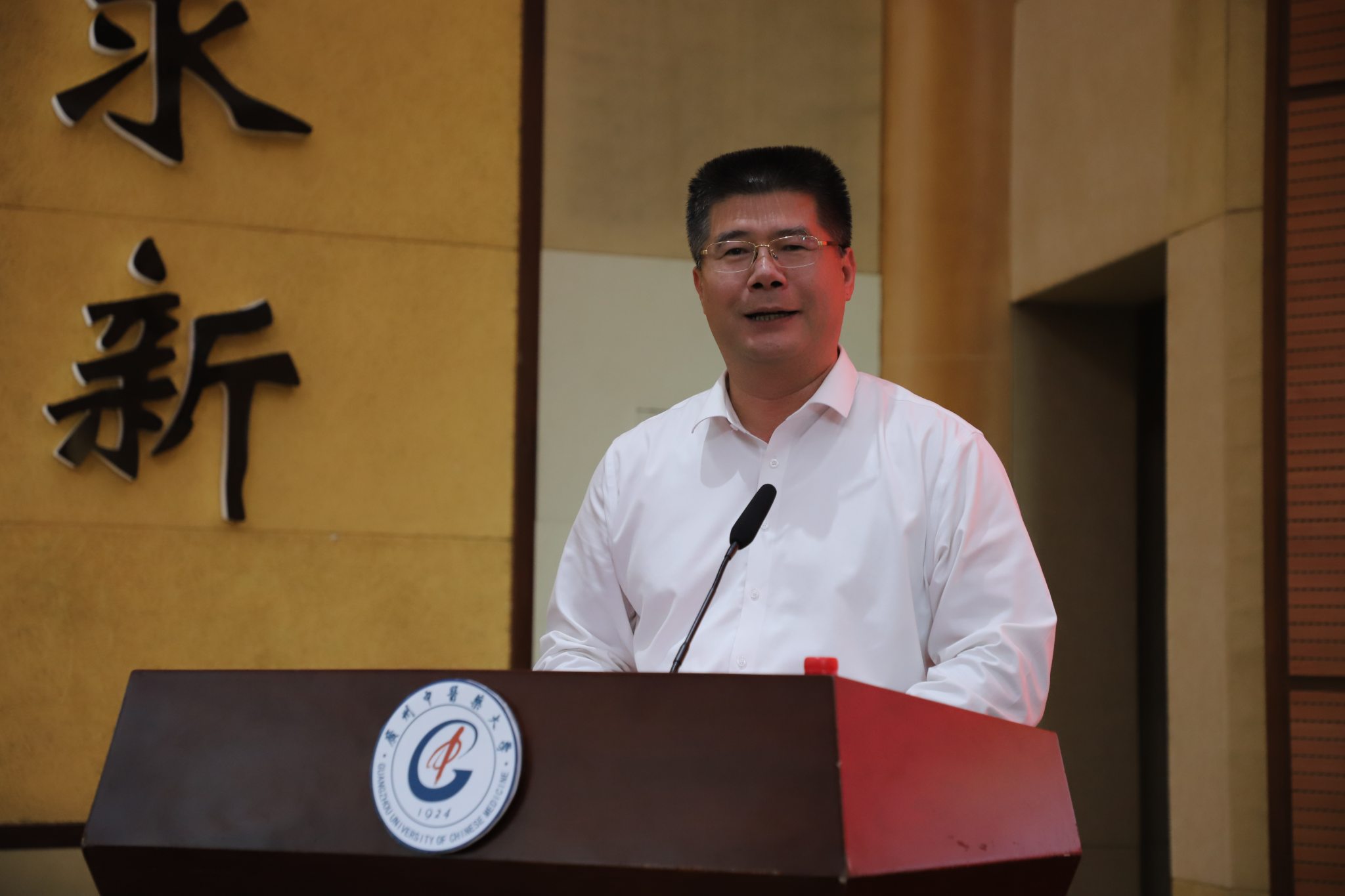 陈文锋对陈丹校友亲临分享、心系母校慷慨解囊的实际行动表达了衷心感谢。他指出,学校诞生于唤醒民族精神、争取民族独立之时,成长于民族觉醒、国家复兴之中,培养了一大批杰出的医药人才,77级陈丹校友就是其中的优秀代表。他强调,陈丹校友的成长历程充分彰显了广中医人“上医医国、先觉觉民”的家国情怀,以及“厚德博学,精诚济世”的校训精神,希望同学们认真听讲,汲取智慧和力量,坚定理想信念,练就过硬本领,以青春之我、奋斗之我,担当时代重任,书写无愧于新时代的华彩篇章。