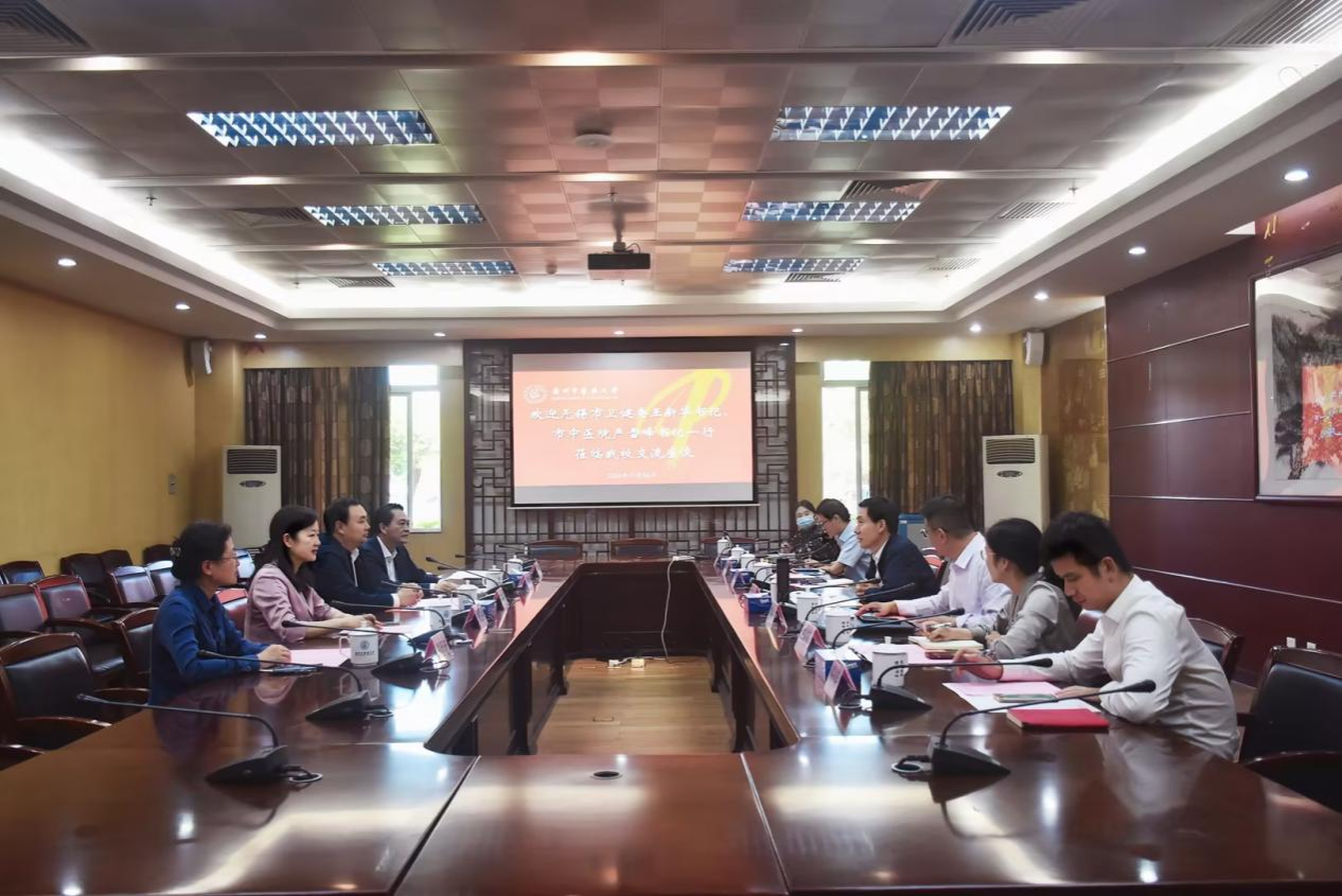 11月6日,无锡市卫生健康委员会党委副书记王新华一行来访我校。学校党委副书记、校长王伟会见来宾并主持交流座谈会。校长办公室、人力资源部、科学技术部、研究生院、发展规划部、科技创新中心等部门负责同志参加座谈。