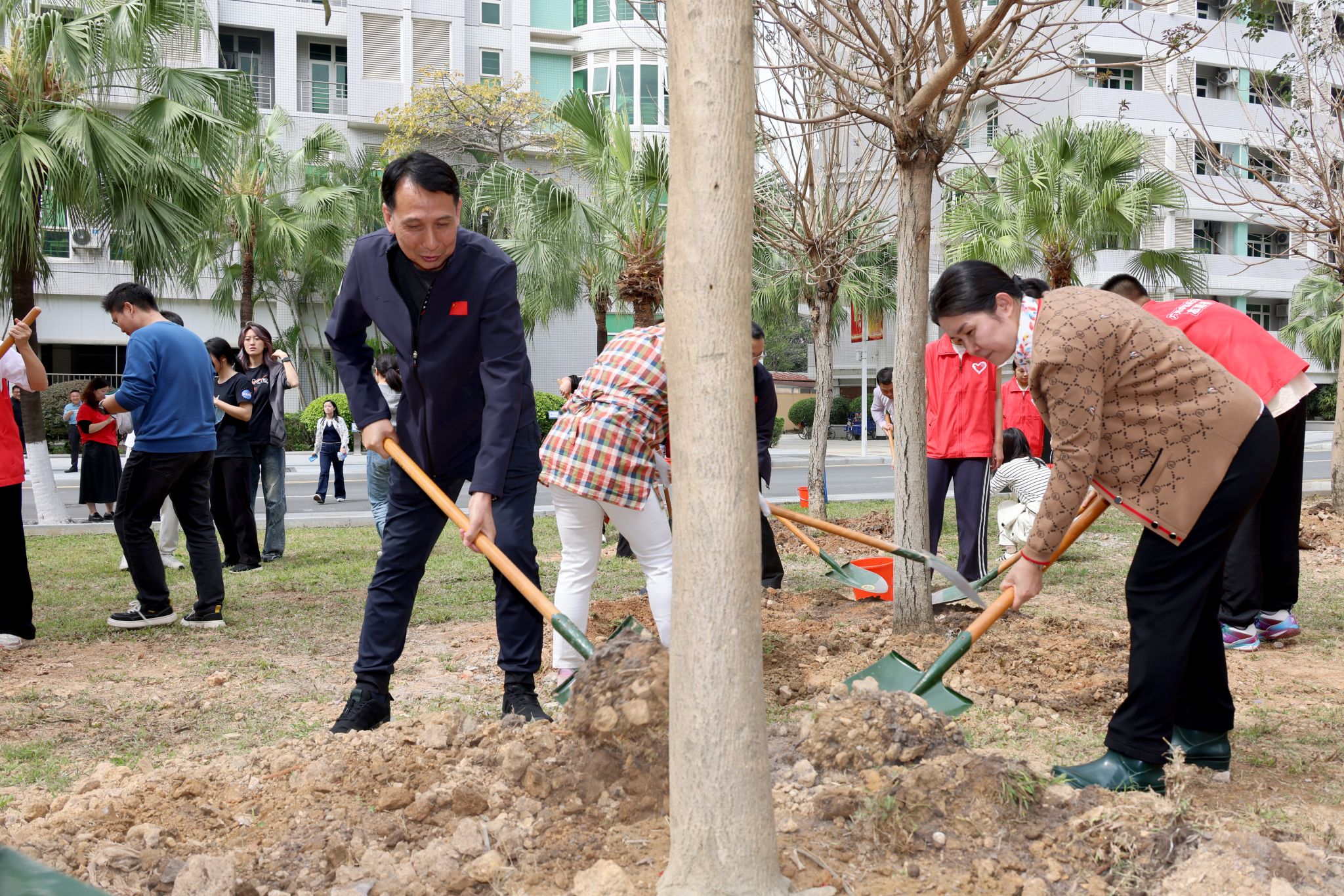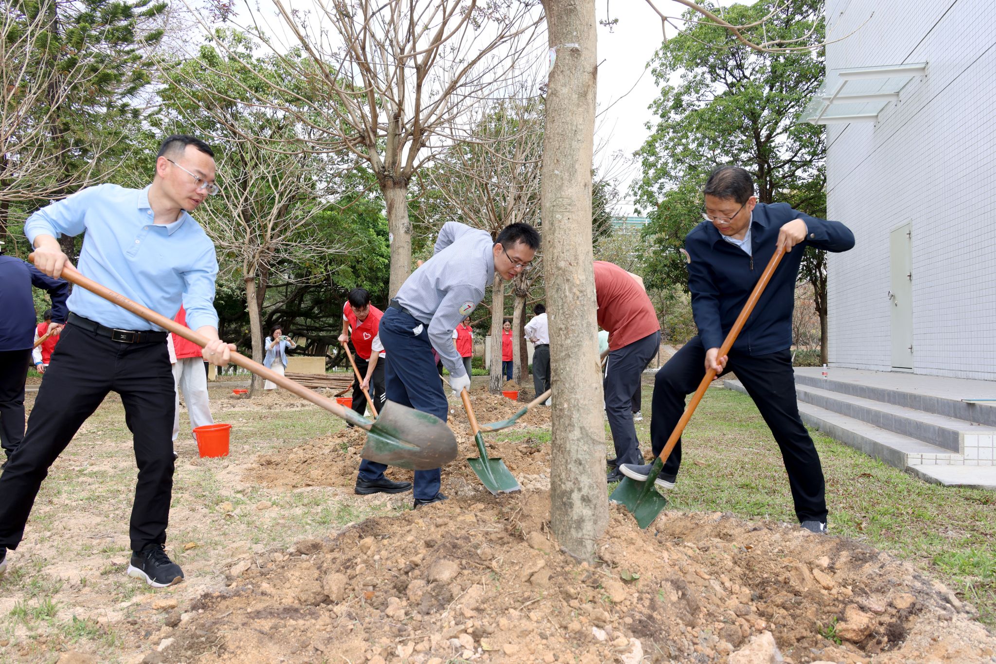 3月12日是全国第47个植树节。学校在大学城校区开展“绿美广东双百行,共植绿意满杏林”植树节活动,响应国家开展义务植树、绿化祖国的号召,深入实施“双百”行动,推进“绿美广东”生态建设,以实际行动践行“绿水青山就是金山银山”的发展理念。