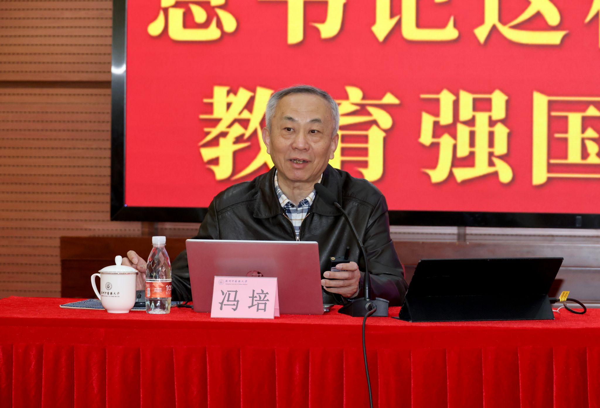 王宏斌强调,全体教职工要深刻领会全国、全省教育大会精神,以高质量思政教育赋能高质量人才培养。一要深刻把握教育的政治属性,推动中华优秀传统文化、中医药文化与思想政治教育深度融合,形成广中医思政工作新范式。二要深刻把握教育的人民属性,坚持以生为本,锻造一支政治坚定、素质过硬的学工强师。三要深刻把握教育的战略属性,坚持守正创新,在五育并举中赋能人才培养质量。