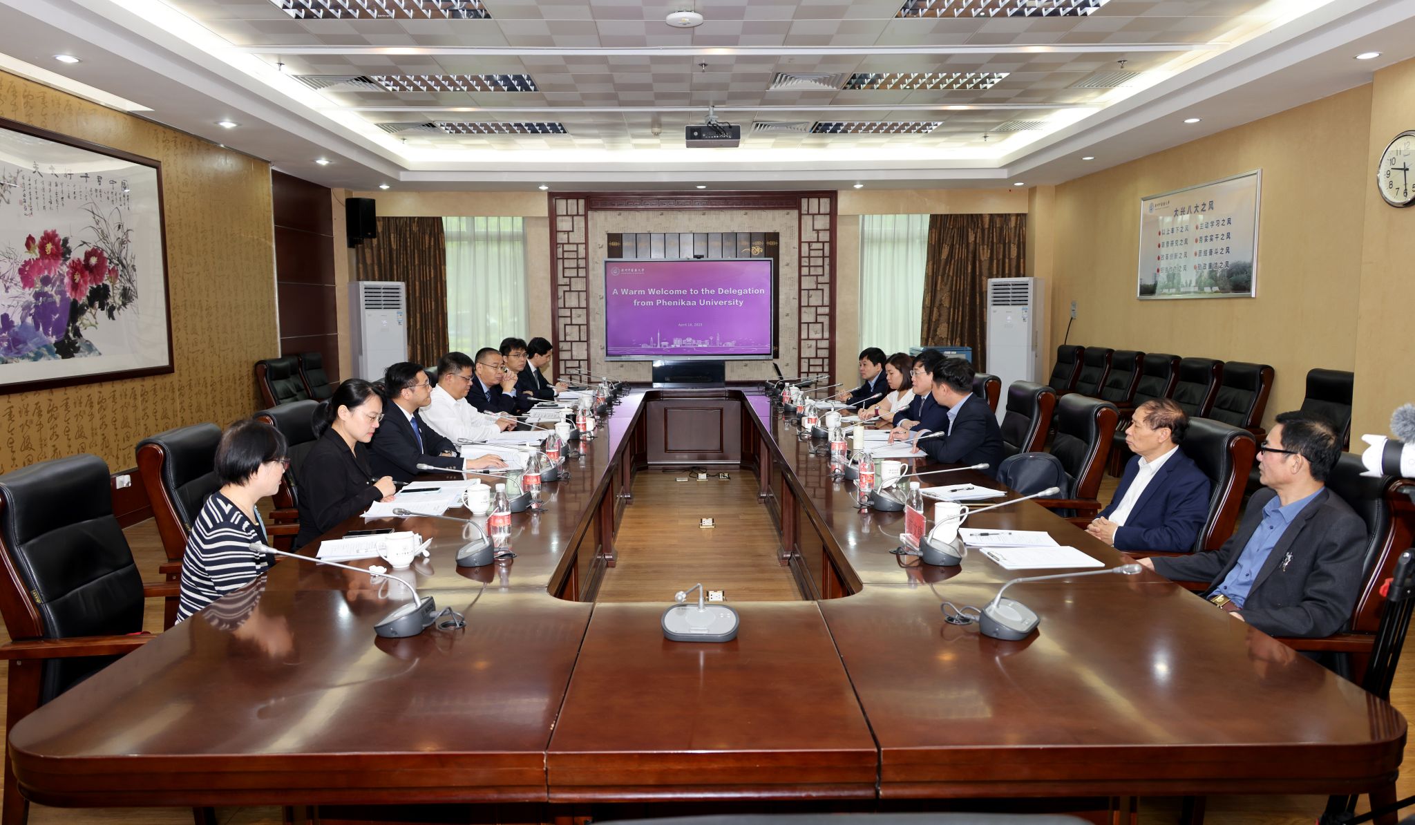 4月18日上午,越南菲尼卡大学副校长武鸿升一行6人莅临Beat365中文官方网站,就深化中医药领域合作事宜展开了深入的座谈交流与实地考察。Beat365中文官方网站党委副书记邱亚洪接见来宾。