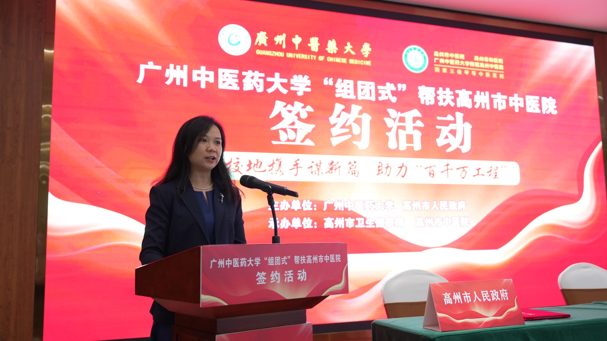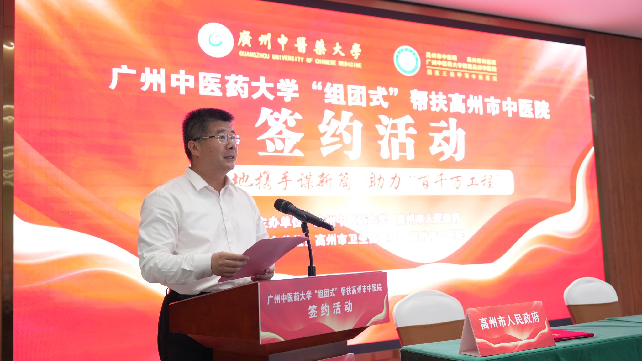 陈文锋表示,本次签约是落实省委“1310”具体部署、深化“百校联百县”行动的重要举措,将推动高州市中医院医教研产融合发展,助力打造中医药示范县。希望双方协同培育中医药新质生产力,在临床诊疗、科研转化和产业赋能等方面深化合作,共同建设粤西中医药创新发展高地。