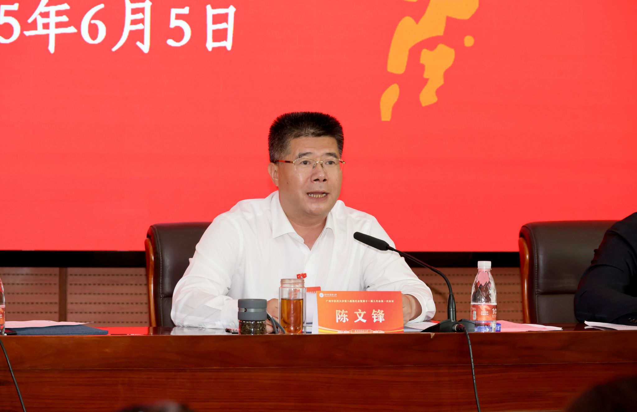 陈文锋代表学校党委向本次“双代会”的胜利召开表示热烈祝贺,向长期以来为了学校发展,在教学、科研、医疗、管理、服务一线,辛勤付出、无私奉献的全体教职员工致以衷心的感谢和崇高的敬意。他指出,自学校第七次教代会、第十次工代会以来,校工会委员会认真履职尽责,全体代表为了推动学校各项工作高质量发展,积极寻计求策,彰显责任担当,是学校党委联系广大教职工的桥梁和纽带,为全面完成“十四五”规划各项工作奠定坚实的群众基础,做了大量工作。面对党和国家对教育、中医药事业发展的新任务、新要求和人民群众健康新需求、新期盼,全体广中医人必须凝心聚力,聚精会神搞建设、全心全意谋发展,高质量推进“双一流”和高水平大学建设是学校的必然选择。
