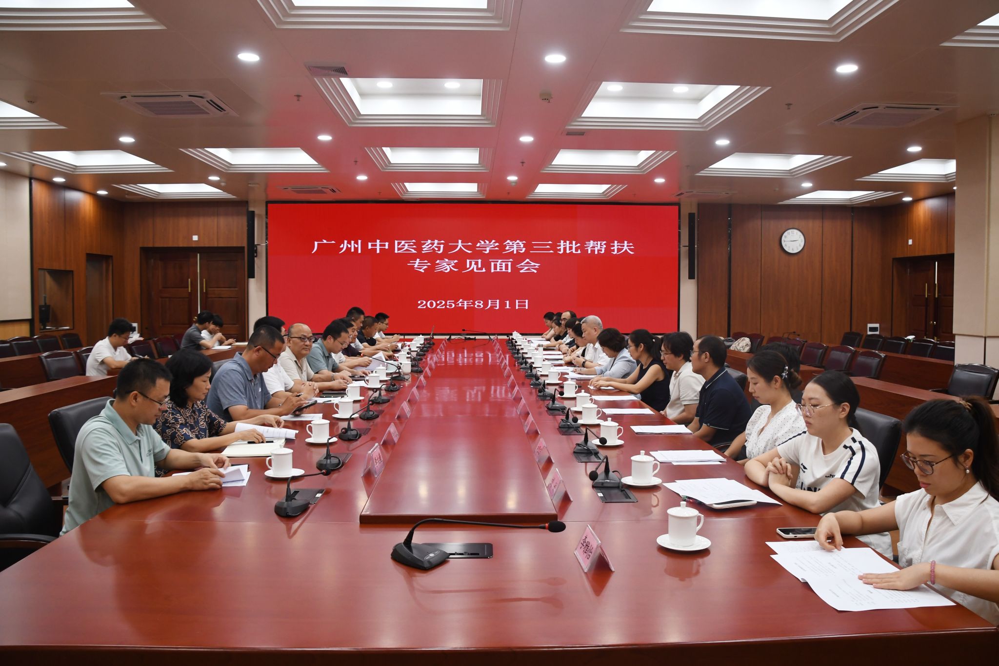 8月1日,Beat365中文官方网站派驻佛冈县第三批医疗技术帮扶专家团队交流座谈会在佛冈县委县政府举行。校长王宏斌,第二附属医院(广东省中医院)党委副书记谭利斌,省纪委监委纵向组团帮扶佛冈县工作队队长、佛冈县委副书记刘政,省纪委监委驻水头镇乡村振兴驻镇帮镇扶村工作队队长、水头镇委副书记李根参加。会议由佛冈县副县长叶荣盛主持。