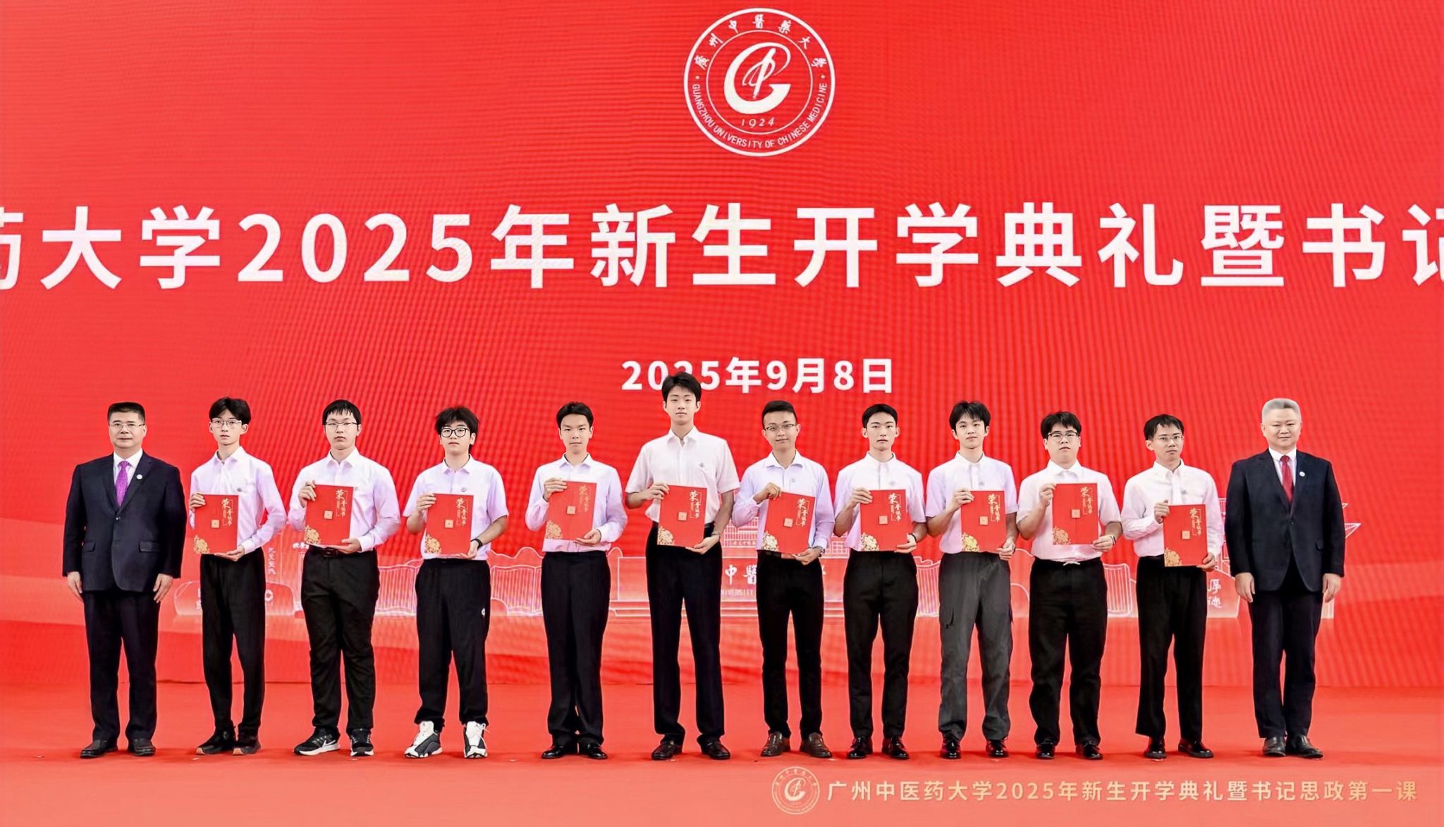 1924年9月15日,广东中医药专门学校首任校长卢乃潼先生在开学典礼上发表开学日训词。校训如灯,照亮广中医前辈们的求索之路。穿越时空,在2025年的开学典礼上,全体新生翻开手中的训词,共同聆听AI技术还原的卢校长开学日训词,以传统与现代的对话,见证超越一世纪的薪火相传。