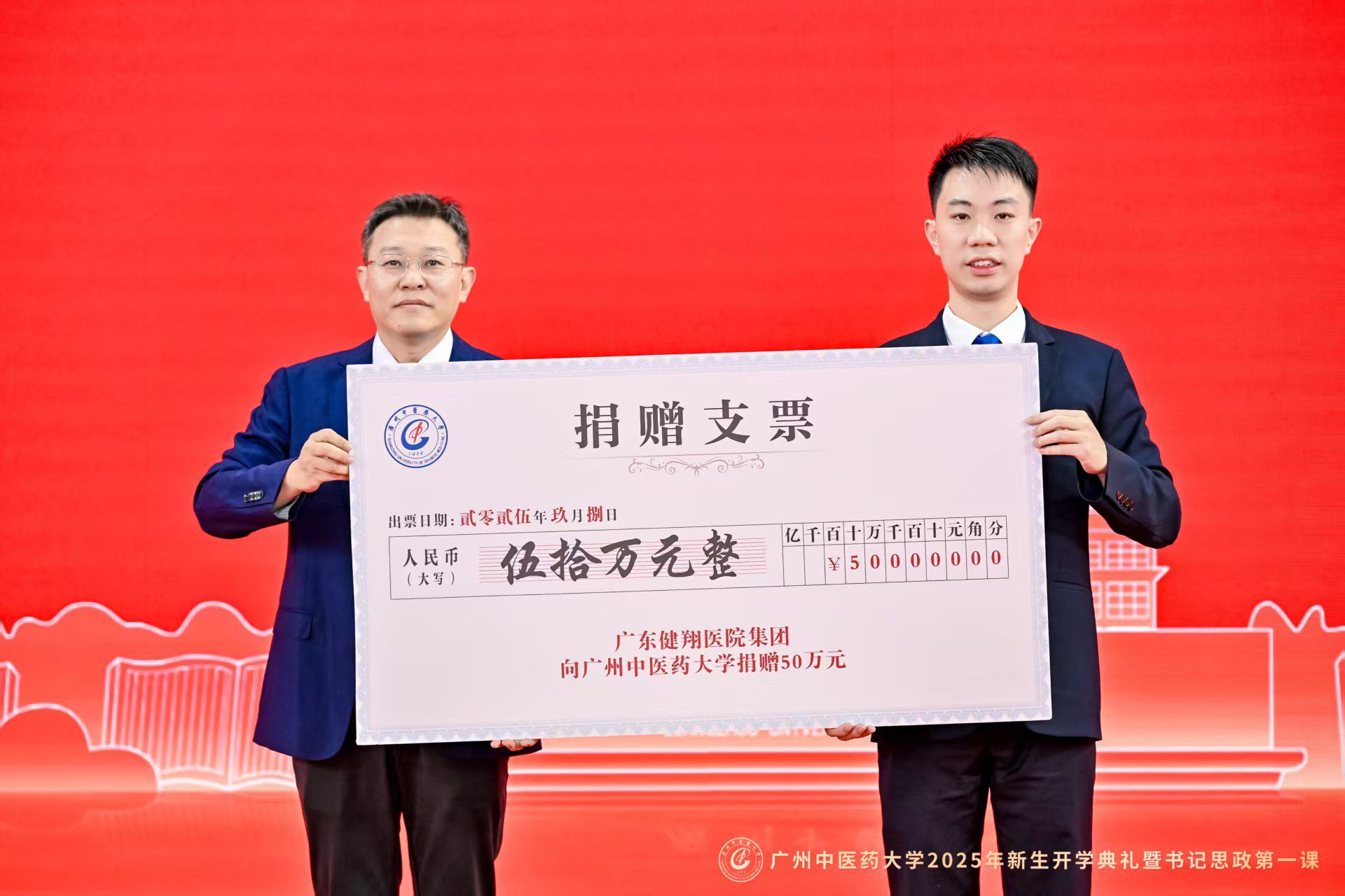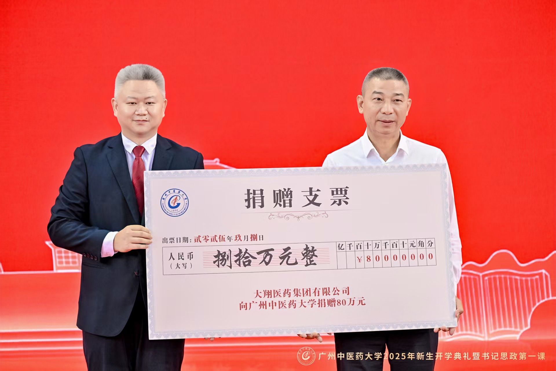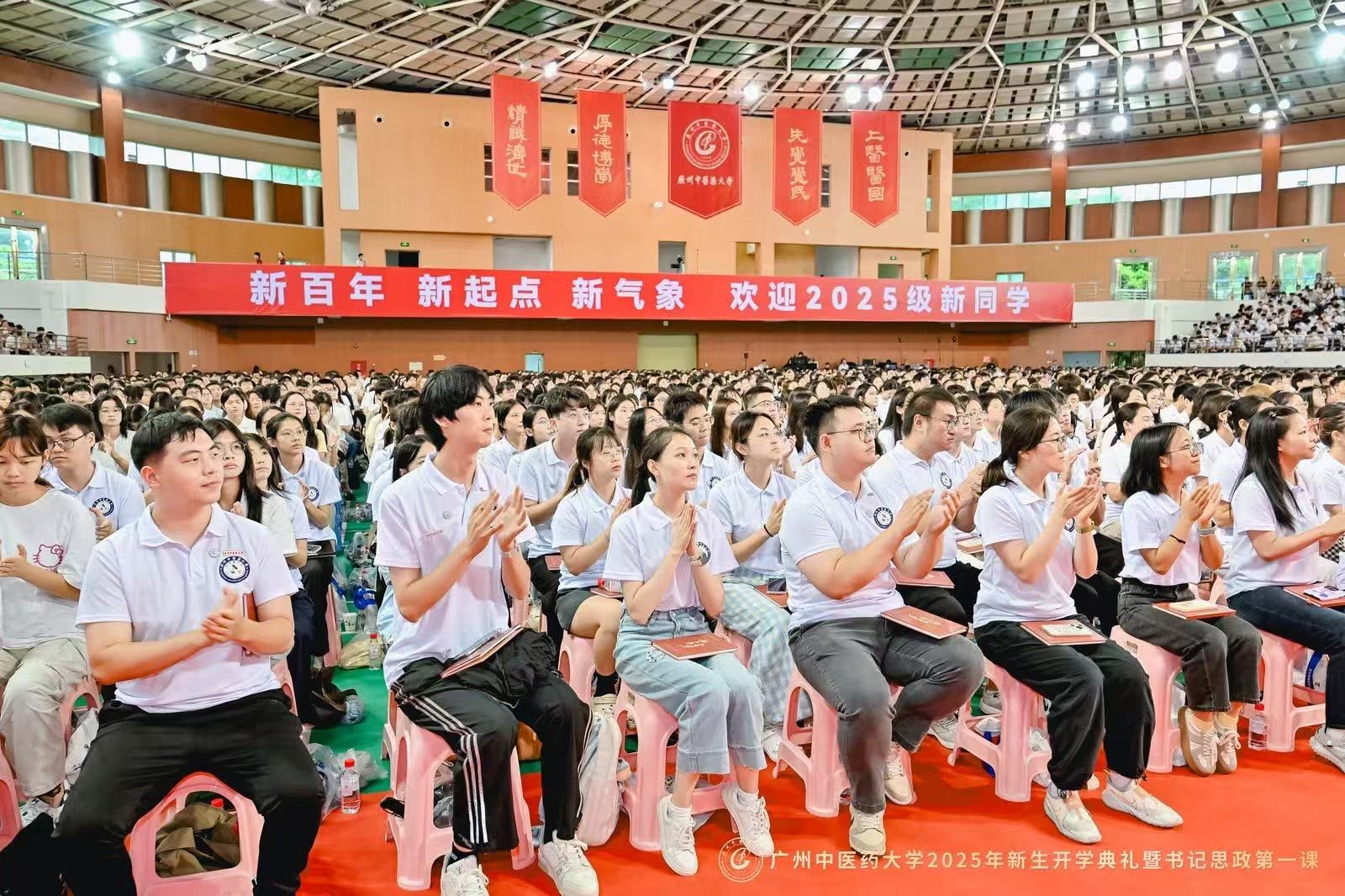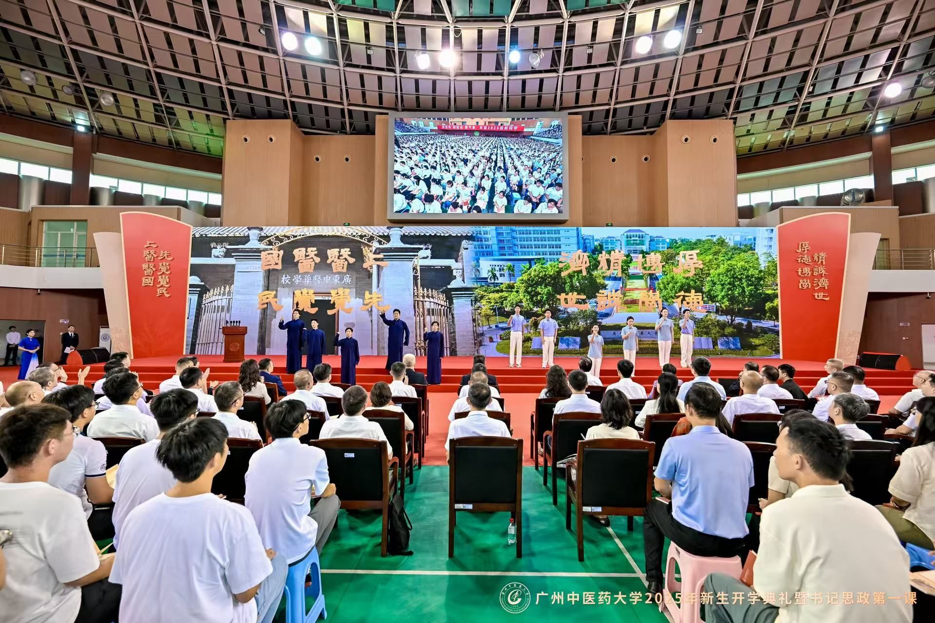 9月8日上午,Beat365中文官方网站2025年新生开学典礼暨党委书记“思政第一课”在大学城校区体育馆举行。在Beat365中文官方网站建校新百年的第一年,6000余名2025级新生,现场聆听通过AI技术还原的首任校长卢乃潼开学日训词,以一场跨越时空的“双向奔赴”,正式开启“广中医人”的新身份。
