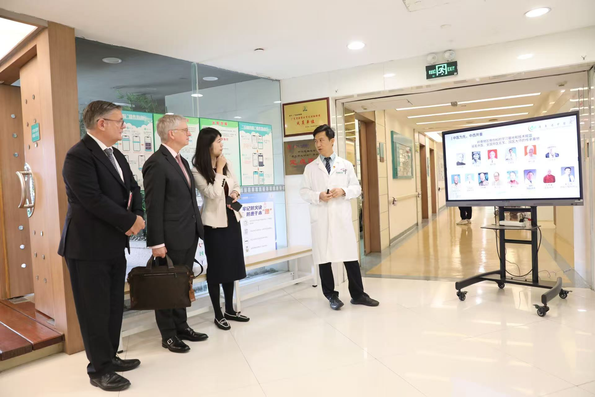 洛迪·恩布雷希茨一行先后参观了医院脊柱科专科、康复大厅、传统疗法科及智慧药房等。