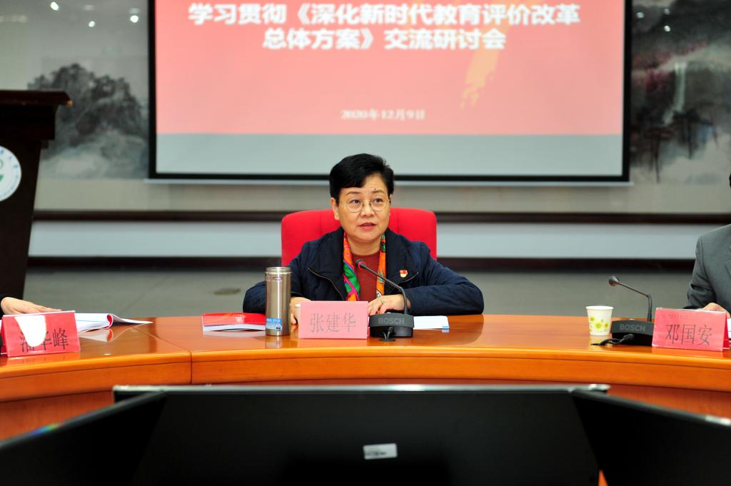 12月9日下午,学习贯彻《深化新时代教育评价改革总体方案》(以下简称《总体方案》)交流研讨会在大学城校区办公楼101会议室召开。学校党委书记张建华主持并讲话。