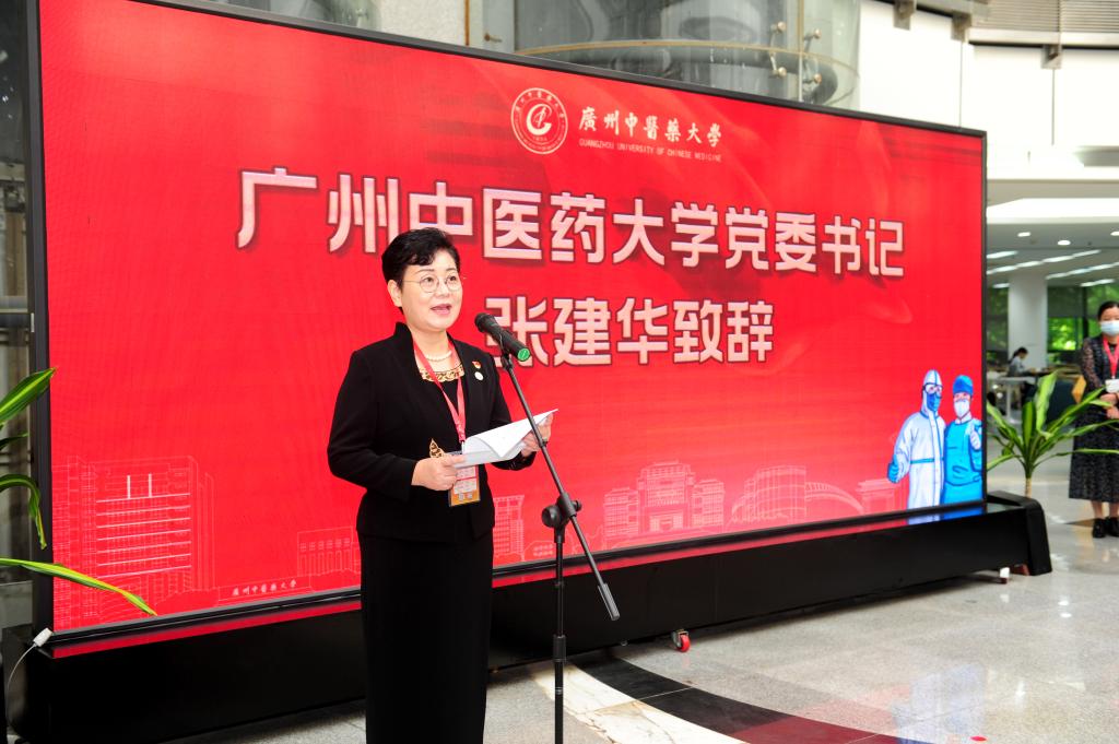 张建华在致辞中说,在疫情防控态势持续向好的时机下,举办中医药抗疫与文化自信研讨会和建设抗疫文献馆,不仅是贯彻落实党和国家振兴发展中医药事业的有关政策、推动中医药工作传承精华守正创新的实际行动,也是加强古典医籍精华梳理和挖掘,助推中西医抗疫研究相互补充、协调发展的有力举措,更是新时代讲好中国抗疫故事,弘扬伟大抗疫精神,凝聚团结奋进力量的具体实践。