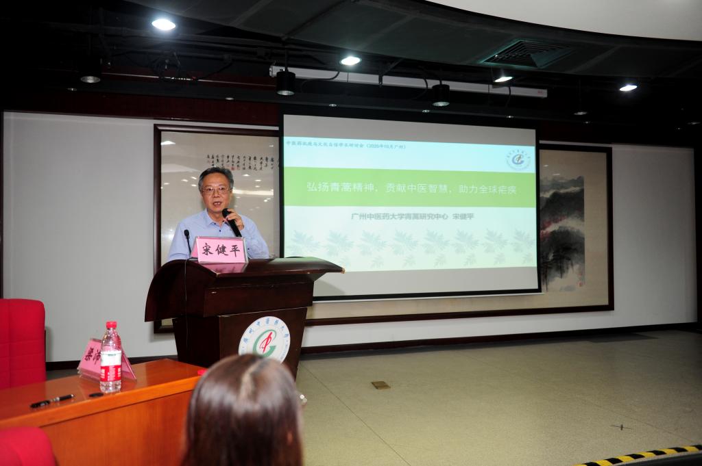 宋健平教授介绍学校青蒿抗疟团队自1974年以来坚持青蒿素及衍生物的临床研究,坚持青蒿素复方的开发及国际推广的基本情况。该团队把中国的青蒿素带给亚非疟疾流行国家,目前逐步形成了具有中国中医特色的疟疾防治方案。今年9月16日,圣多美和普林西比卫生部长给中国援圣普抗疟团队颁发了“疟疾防治突出贡献奖”。