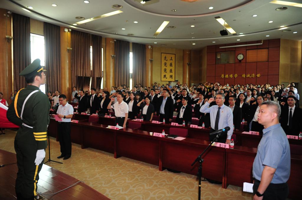 学校本年度新入职教师、一线骨干教师代表、校本部相关管理部门及二级学院党委(党总支)负责人、三所直属附属医院分管领导及人事部门负责人近200人参加活动。