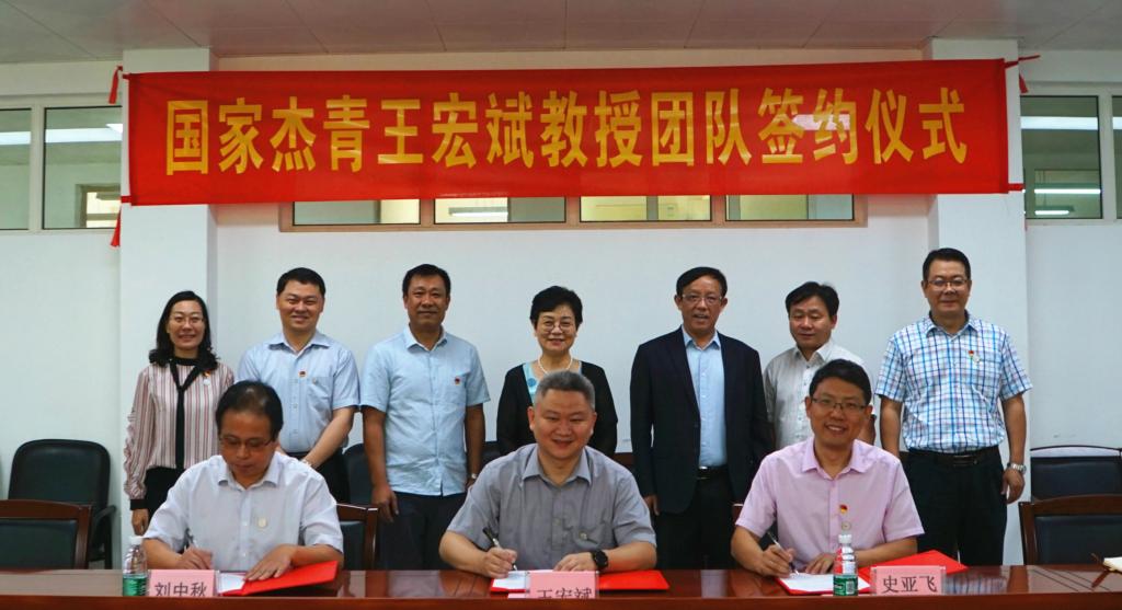 11月5日上午,首个国家杰青王宏斌教授团队签约仪式在中药学院A419会议室举行,这是我校在高层次领军人才引进工作一大新突破,学校党委书记张建华出席并见证了签约仪式。副校长许能贵,党办、人事处、科技处、教务处、研究生院、中药学院等部门负责人以及“中药资源与生物技术”研究团队全体成员参加。
