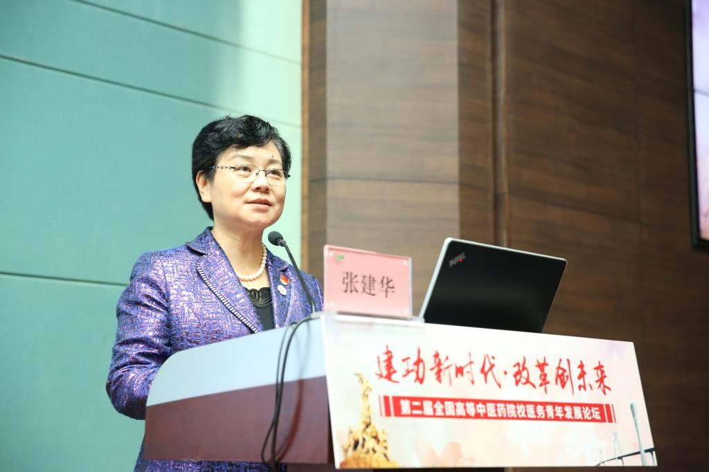 张建华向来自全国19所中医药院校的嘉宾表示热烈欢迎。她回顾了改革开放40年来国家和广东省实现伟大跨越的历程,介绍了我校及附属医院近年来的发展情况。强调当前中医药振兴发展正处于历史性机遇,号召广大中医药院校医务青年为中医药事业发展贡献青春力量。