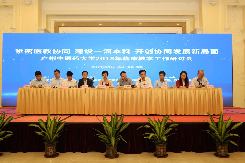 10月25至26日,我校主办、附属广东中西医结合医院承办的2018年临床教学工作研讨会在佛山南海召开。会议以“紧密医教协同,建设一流本科,开创协同发展新局面”为主题,专题研讨医教协同背景下的临床教学工作。学校党委书记张建华、校长王省良和副校长梁沛华,有关职能部门、二级学院负责人以及来自80个临床教学基地的代表共260多人参加了会议。广东省中医药局副局长李梓廉、佛山市南海区委潘永桐常委、佛山市南海区卫计局局长孔小燕、广东省中医药局科教处副处长伍杰勇等领导应邀出席开幕式。