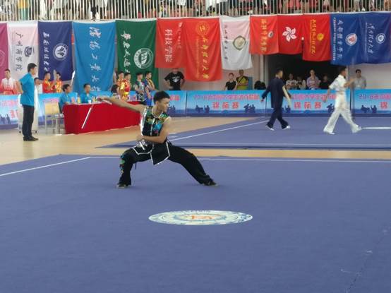 我校派出由体育健康学院院长潘华山任领队,副院长李兆伟、刘艳君老师任教练和8名运动员组成的11人代表队参加了本次比赛。其中,国际学院林元凯获得男子丙组八卦掌冠军,体育健康学院刁俊镔获得男子丙组软器械冠军,经济与管理学院陈逸健获得男子丙组通臂拳冠军。