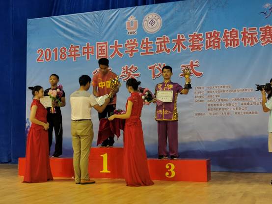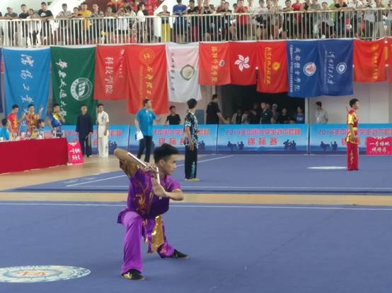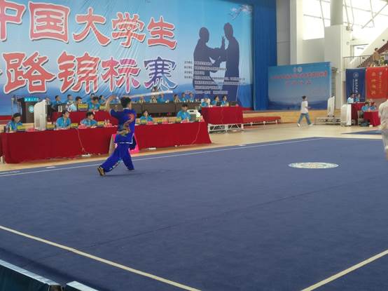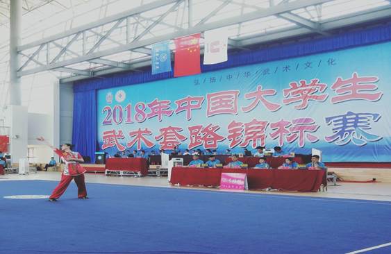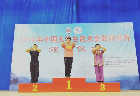 近日,在湖南衡阳湖南工学院承办的2018年中国大学生武术套路锦标赛上,我校运动员在比赛过程中勇于拼搏,用精湛的技艺展现了广中医学子良好的精神风貌,最终以3金5银4铜的战果,获得丙组团体总分第一名的优异成绩。