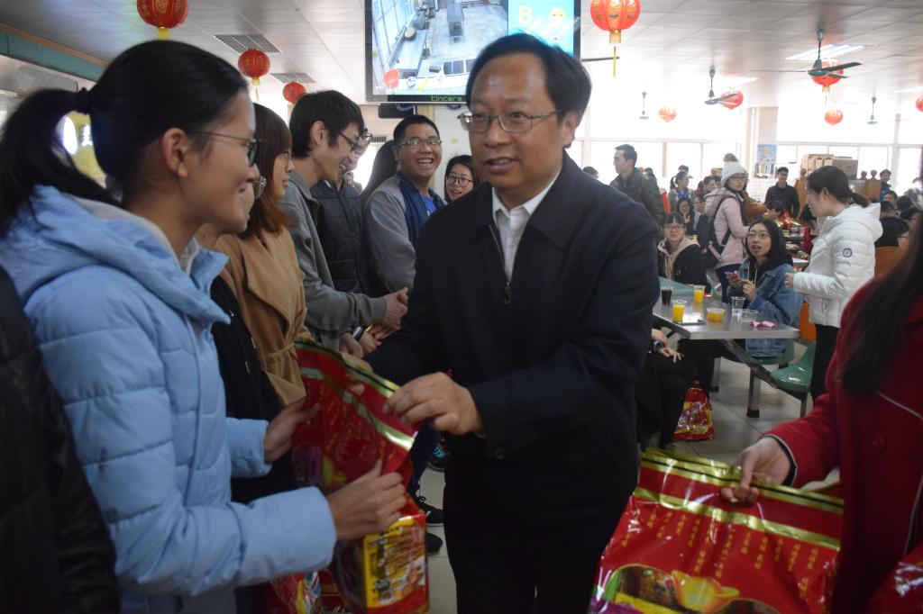 王省良、翟理祥代表学校向留校同学表达了节日的问候和祝福,同时提醒同学们在寒假期间注意安全,过一个祥和温馨而充实的春节。
