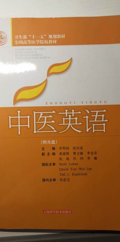 3、中医专业英语,中国中医药出版社,2016 副主编