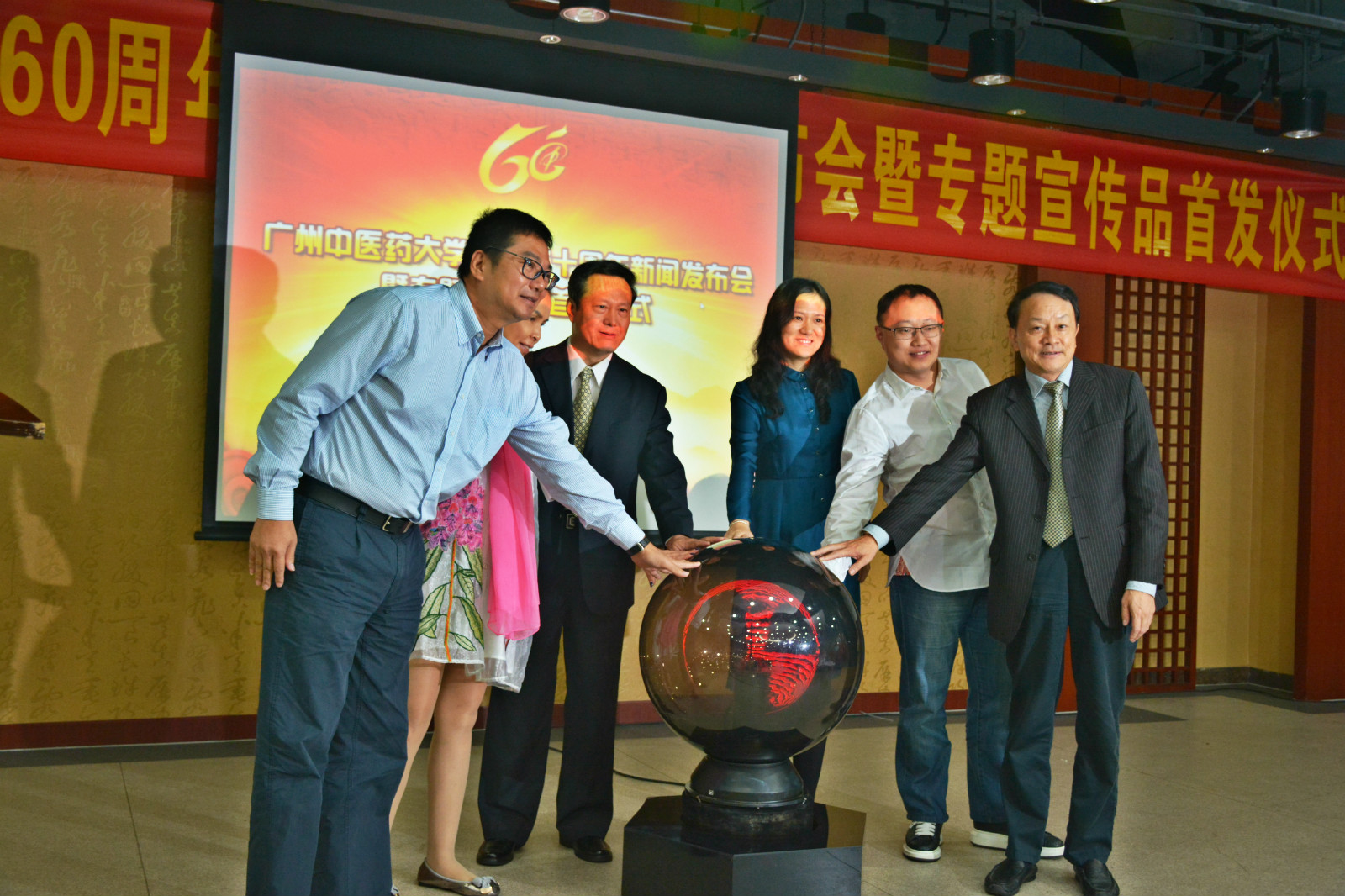 党委宣传部牵头制作了建校六十周年系列专题宣传品,除了在图书馆展出的《风正一帆悬》成就展外,还有《风华正茂》图志和《风起岭南》宣传片。当天,学校领导黄斌、王省良与南方日报出版社副社长周山丹女士、广州市广播电视台高级编导高筠女士、扬子江药业集团华南公司总经理徐新宇先生、广东一方制药有限公司副总经理詹喜丰先生共同启动了专题宣传品首发仪式。黄斌、王省良向师生代表赠送了图志和宣传片。