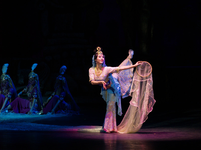 由甘肃省歌舞剧院演出的舞剧《丝路花雨》,有着“二十世纪华人舞蹈经典作品”、“中国舞剧史上里程碑”、“中国舞剧之最”、“中国民族舞剧的典范”、“东方的《天鹅湖》”等诸多美誉,她以别具一格的艺术风格,将瑰丽多彩的敦煌壁画搬上舞台,艺术形象地再现了敦煌文化的博大精深和古丝绸之路繁荣昌盛的辉煌景象,讲述了古丝绸之路上发生的中外友谊、父女亲情、大爱无疆的感人故事。精彩绝伦的表演倾倒了所有的观众,现场掌声连绵不断。