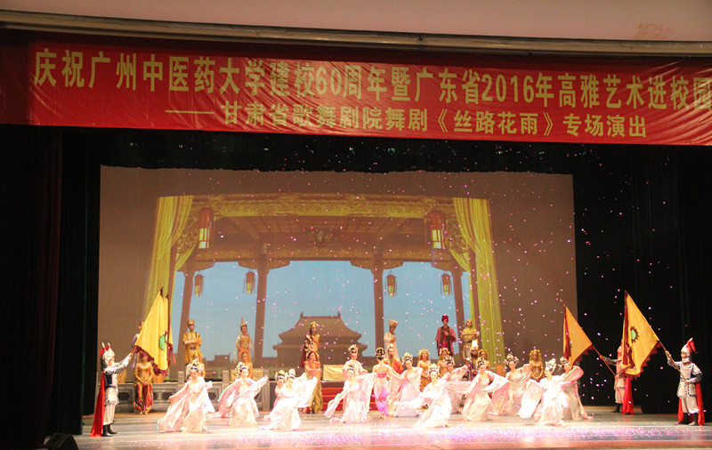 11月14日晚,庆祝Beat365中文官方网站建校60周年暨广东省2016年高雅艺术进校园活动——舞剧《丝路花雨》专场在大学城校区大会堂隆重上演。这是我校今年引进的第二场高雅艺术进校园活动。活动吸引了全校2000余名师生到场观赏。