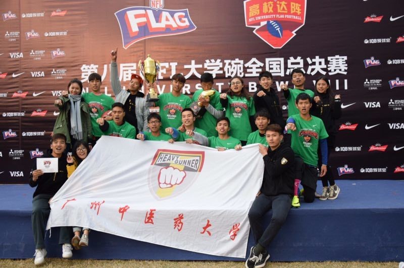 10月30日,我校橄榄球队荣获第八届NFL"大学碗"腰旗橄榄球全国总决赛冠军,实现四年三冠的壮举。