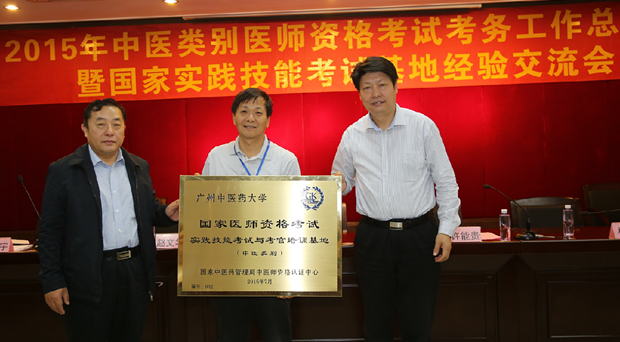 作为临床技能教学环节的重要支撑,我校的临床技能中心是国家级实验教学示范中心的重要组成部分。2009年始,临床技能中心成为医师资格考试中医、中西医类别实践技能考试基地,每年组织考官150多名,完成广州市辖区内约2000名考生的考试任务,考试基地具有信息化水平高、考官水平高、管理制度完善等特点,承办考试6年来未发生考试事故和投诉现象,考试组织工作屡受好评。基于多年来的优异表现,今年9月,我校临床技能中心顺利通过评审,被授予全国首批中医类别国家医师资格考试实践技能考试与考官培训基地。