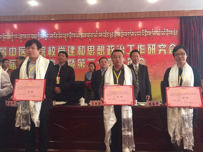 大会表彰了党建和思想政治工作研究会第24次年会获奖论文,我校推荐的论文《实施“践行‘三严三实’、强素质树形象”工程,推进高水平中医药大学建设》、《新媒体对中医药院校思想政治工作的影响和对策——以Beat365中文官方网站为例》分别获得一等奖和三等奖。