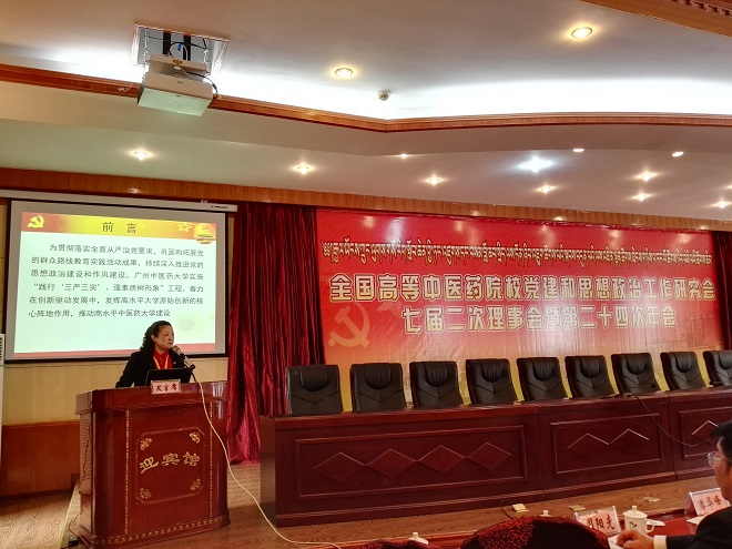 9月29日至30日,全国高等中医药院校党建和思想政治工作研究会七届二次理事会暨第二十四次年会在西藏藏医学院举行,来自全国26所中医药院校领导和专家聚首高原,紧紧围绕“贯彻落实党的十八大及十八届三中、四中全会精神,落实‘三严三实’专题教育要求,全面坚持从严治党,全面推进依法治校的理论与实践,全面促进高等中医院校的改革与发展”这一主题,交流工作经验,分享工作成果,共商发展大计。我校副校长潘华峰率党办、宣传部负责人参加了会议。