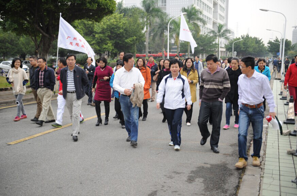 12月3日下午,2014年冬季阳光校园行活动启动仪式在大学城校区举行,200多位教职工参加了启动仪式和校园行活动。各二级工会高举会旗,组织教职工走出办公室,在校训石前依时集中。简短的仪式后,大家沿着校道围绕教学区行走一圈。 冬季阳光校园行活动安排在每年的12月份,此次活动主题是"我运动我健康,我参与我快乐",校工会期待更多教职工参与到后续的校园行活动中来。