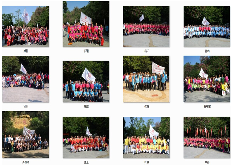 11月15日,校工会组织2014年校本部工会会员参加白云山登山活动,学校党政领导与近千名工会会员共同分享登山乐趣,一道欣赏白云山金秋美景。本次活动主题为"开展全民健身,促进职工交流,彰显集体风采",首次组织校本部会员在规定的时间、地点,以所属工会为单元举会旗列队上山。登山活动是我校进一步落实《国务院关于印发全民健身计划(2011-2015年)的通知》精神,进一步增强职工体育健身意识,形成健康文明生活方式,增强社会主义集体主义观念,营造团结积极向上团队精神而开展的一项内容。