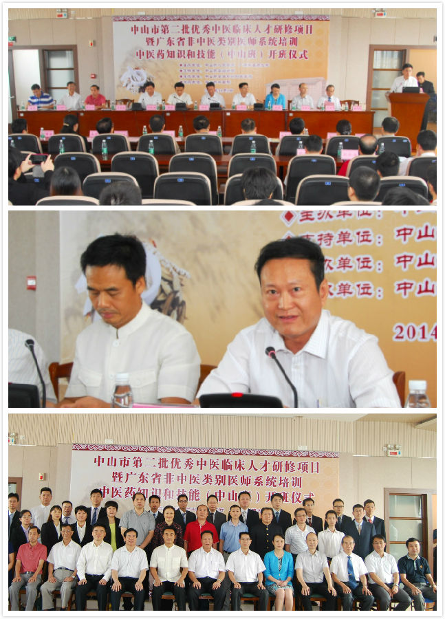 11月1日,我校与中山市合作的"中山市第二批优秀中医临床人才研修项目(简称"优才项目")"暨"广东省非中医类别医师系统培训中医药知识和技能(中山班)(简称"西学中"班)"开班仪式在中山市中医院举行。广东省中医药局医政处处长黎锦城,学校党委书记黄斌、副校长孙晓生,中山市市委常委、组织部部长雷彪,项目承办单位中山市卫计局、我校人事处与继续教育学院部分领导,指导老师代表和全体学员共320多人参加了仪式。