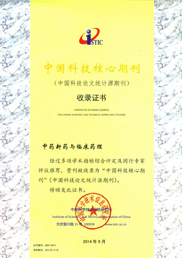 日前,在北京国际会议中心举行2014中国科技论文统计结果发布会上,经国家科学技术部中国科学技术信息研究所中国精品科技期刊遴选指标体系综合评价,我校《中药新药与临床药理》再次被评为"中国精品科技期刊"。国家科技部自2000年以来立项进行中国精品科技期刊战略研究,中国科学技术信息研究所建立了中国精品科技期刊遴选指标体系综合评价系统,自2008年起每3年评选一次中国精品科技期刊。"第3届中国精品科技期刊"评选是经过该综合评价系统科学评价,从入选为中国科技论文与引文数据库(CSTPCD)收录的近2000种科技期刊(中国科技核心期刊)中评选出中国精品科技期刊(中文版)300种和中国国际化精品科技期刊(英文版)15种。中国精品科技期刊是指在某一学科内质量和水平较高、在国内具有较高影响且具有一定发展潜力的科技期刊。