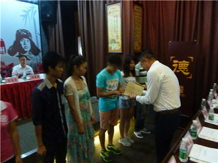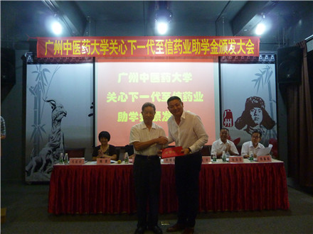 黄朝阳主任授予了魏平先生"突出贡献荣誉证书",以表彰和纪念广州至信药业集团向我校关心下一代助学基金会捐赠善款20万元。魏平先生将助学金发放通知书一一送到60位至信药业助学金获得者手中。今年关心下一代助学金还包括张必昌助学金(捐资6000元)、王氏姐妹助学金(捐资1.2万元),作为这两项助学金的联系人,肖鑫和教授为6位助学金获得者发放通知书。