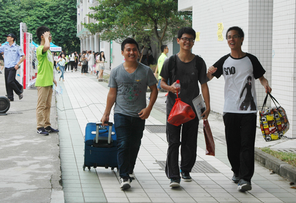 9月12日是我校新生报到的日子,校园内处处洋溢着喜庆和热闹的气氛。学校党委书记黄斌、校长王省良、党委副书记陈英华,副校长刘晟、许能贵到迎新现场,与新生及家长亲切交谈,并深入学生宿舍看望新生和家长。 据统计,2014年我校共招收境内学生4023人,其中本科学生2696人,硕士研究生880人,博士研究生147人,专科学生300人;涉及医学、理学、工学、管理学、经济学、文学、教育学、哲学、法学等9个学科门类。境外学生共招收636人(含新加坡合作办学90人),其中境外本科生452人,研究生184人,分布在全球20个国家和地区。