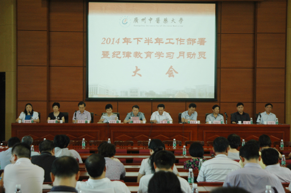 黄斌对新学期工作提出若干意见:一是要完成学校全面深化改革方案制订工作并组织实施。要明确改革创新是推动学校科学发展的不竭动力;要把握好改革与发展的关系,继承与创新的关系,改革与稳定的关系。二是进一步提高党建工作科学化水平。按照习总书记关于新时期好干部标准与要求,加强领导班子与干部队伍建设,本学期重点抓好处、科两级干部换届工作和干部培训工作;按照建设学习型、服务型、创新型党组织的要求,切实加强学校基层党组织建设,增强基层党组织的凝聚力和战斗力;同时巩固与发展党的群众路线教育实践活动成果;党务系统要承办(召开)好全国高等中医药院校党建和思政工作研究会年会等重要会议。三是要全面实施"创新强校工程"、大力推进高水平中医药大学建设,做好人才培养、科学研究、学科建设、高层次人才队伍建设和学生工作。四是做好附属医院工作,要以改革创新为动力,从容应对医改,不断提高办院水平。五是要努力建设平安稳定的幸福校园,要在政策与财力允许情况下,继续改善师生工作、学习与生活条件,不断提高教职工的福利待遇;要化解与消除各种安全隐患,确保校园和谐稳定。
