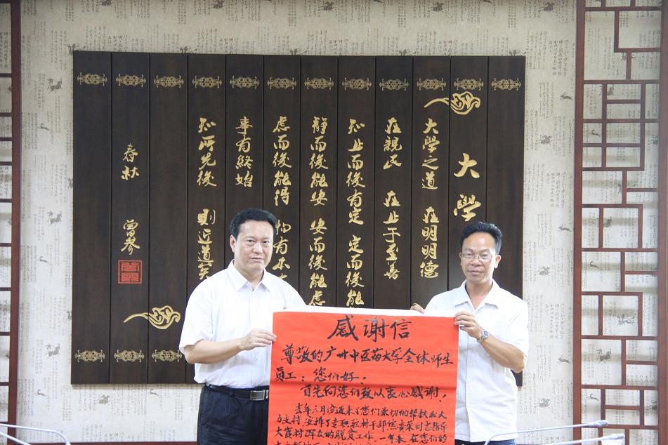 与会人员在大崀村村党支部书记、村委会主任李金兴介绍了今年帮扶项目计划后,就下一阶段的帮扶工作进行了交流。座谈会结束后,大崀镇、村干部参观了我校广东省中医药博物馆。