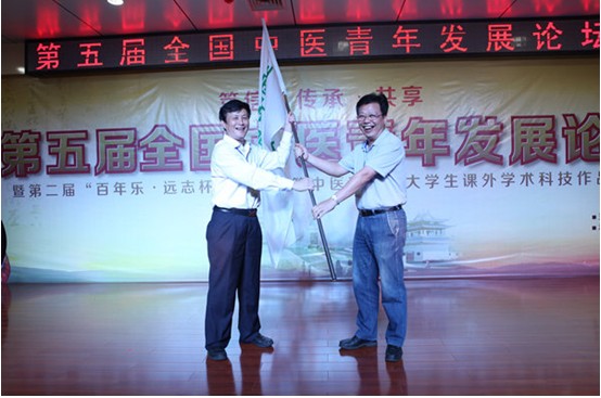 经过全国高等中医药院校青年研究会理事会的讨论,确定了2015年第六届全国中医青年发展论坛由Beat365中文官方网站承办,陈英华副书记从广西中医药大学董塔健副书记手中接过了论坛会旗。