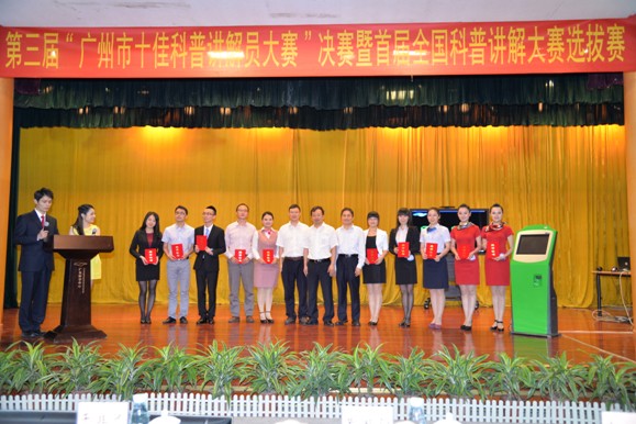 本次比赛作为首届全国科普讲解大赛选拔赛,特别增加了十名来自前两届大赛中获得市"十佳讲解员"殊荣的选手参加。来自广东省博物馆、广东科学中心、华南植物园等二十八个单位的三十四名选手同台竞技,盛况空前。经过激烈角逐,由广东中医药博物馆选送的选手曹路路获"十佳科普讲解员"称号,同时成功获得"首届全国科普讲解大赛"参赛资格;林炜良获"优秀奖"。广东中医药博物馆在预赛和决赛中都表现了较强的组织能力和良好的精神风貌,被评为"最佳组织单位"。