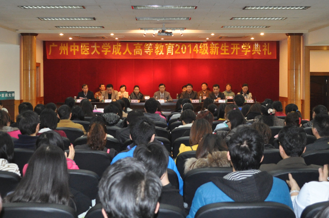 3月15日,我校成人高等教育2014 级新生开学典礼在三元里校区多功能会议室主会场和办公楼6个大课室分会场,采用视频直播的方式隆重举行。广东省中医药局副局长李梓廉、学校副校长孙晓生出席会议并分别致辞。学校党办、校办、继续教育学院负责人和二级学院领导以及近1400名成教新生出席了大会。
