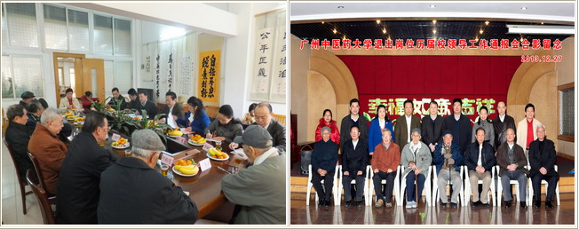 黄斌着重围绕深入开展群众路线教育实践活动,学习贯彻党的十八届三中全会精神,加强与改进党的建设,推动学校科学发展等方面通报了有关情况:一是筹备召开了学校第八次党代会,总结我校前五年的工作成绩,找出存在的问题,明确提出今后五年的奋斗目标,在人才培养、科学研究、社会服务、文化传承创新和党的建设等方面作了全面布署。二是学校根据中央和省委的统一部署和要求,扎实深入开展党的群众路线教育实践活动,坚持"三个注重",注重思想武装,注重结合实际,注重立行立改,达到了"三个提高"的效果,广大领导党员干部对执行党的群众路线的自觉性得到提高;转变作风,服务师生工作水平得到提高;推动科学发展、办学水平得到提高。三是不断探索办好人民满意中医药高等教育的三个规律,即:中国特色社会主义条件下办大学的规律;市场经济条件下办大学的规律;经济全球化条件下办大学的规律。最后,黄斌再次感谢老领导的关心和支持,在新的一年来临之际,祝大家生活幸福,健康长寿。