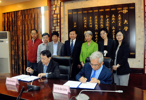 双方深入探讨了中医药本科教育及护理学专业教育,两校就共同培养5年制中医本科专业学生达成合作共识,两校校长签署了的合作协议。Tan Sri Abu Bakar Suleiman校长一行还参观了我校中医药博物馆、护理学院和第一附属医院。