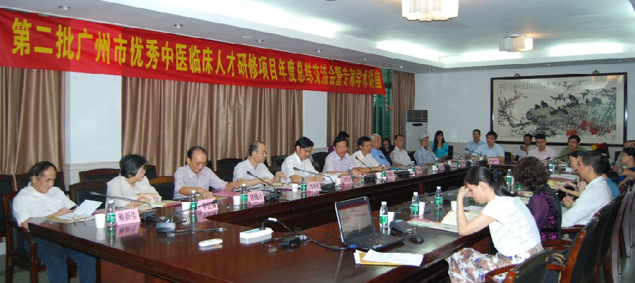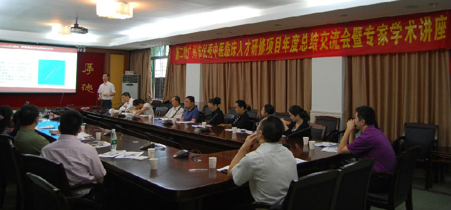 10月18日,第二届"广州市优秀中医临床人才研修项目"年度总结会议在我校三元里校区召开。校领导孙晓生,广州市卫生局领导刘忠奇、杨克彬,学校人事处李坤寅、黄永,以及指导老师陈镜合、劳绍贤等和研修学员共40多人与会。