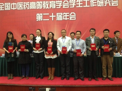 10月10-11日,全国中医药高等教育学会学生工作研究会第二十届年会在辽宁沈阳召开,第一临床医学院辅导员李平老师、经济与管理学院罗向晗老师在会上被评为2012 -2013年度全国中医药院校优秀辅导员。 全国中医药院校共193名代表出席了会议。本次会议安排了主题报告、大会交流等内容。全国中医药高等教育学会学生工作研究会副理事长、校党委副书记陈英华带领我校代表参加会议并主持大会交流环节,北京中医药大学等6所院校在会上作了交流,罗向晗老师代表优秀辅导员发表了题为《做一个幸福的青春引路人》的获奖感言。